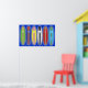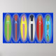 Malibu Beach, c'est un mode de vie. Six planches de surf colorées sur un jet bleu de mer représentant le mode de vie de la Californie du Sud de sable, de mer et de surf. Amusez-vous au bord de la mer avec ce design unique et coloré de planches de surf de Malibu Beach. Profitez de l'image et du style de vie californiens partout en accrochant cet original de l'État d'or au bord de l'océan Pacifique.