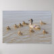 A female mallard duck (Anas platyrhynchos) with her ducklings at The Rising Sun Country Park, Newcastle upon Tyne.