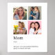Créez votre propre cadeau de jour pour mère personnalisée pour maman avec une affiche de définition personnalisée avec quatre de vos photos préférées dans un simple collage. Ajoutez votre propre définition de maman, de devis personnalisé ou de message à cette conception de style de dictionnaire.