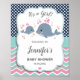 Affiche de bienvenue du Baby shower de baleine chic avec une baleine momie et baleine à petit avec un point de polka marine et arrière - plan de chevron rose et turquoise. Personnalisez-le facilement et rapidement, appuyez simplement sur le bouton customiser pour réorganiser et formater le style et le placement du texte. Les articles correspondants sont disponibles au magasin The Happy Cat Studio Zazzle ! c) Le Happy Cat Studio.