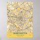 Affiche Manchester - Royaume-Uni Carte de la ville jaune