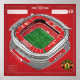 Mur Art & Décor : Plan Stylisé Old Trafford avec des accents rouges et des caractéristiques étiquetées.