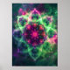 Mandala de fleur cosmique mystique dans les tons rose, vert et violet dans un arrière - plan de galaxie.