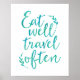 Mangez bien voyager souvent typographie citation impression d'affiche caractéristiques typographie manuscrite moderne en aquarelle bleue. Est aussi livré en différentes couleurs.