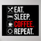 Manger. Dormir. Café. Recommencer. Cet accessoire de café amusant est un grand cadeau pour un amoureux du café. Parfait pour les hommes et les femmes buveurs de café et les accros du café qui ont plusieurs tasses ou tasses de café le matin. Aimez-vous boire du café, du cappuccino, des lattes ou de l'espresso au petit-déjeuner ? Êtes-vous accro au café et à la caféine ? Si vous ne pouvez pas aller une journée sans café, alors c'est pour vous !