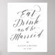 Simple élégante calligraphie Script Mariage Réception Mange Boire et être marié Connectez-vous dans de belles lettres fluides et vos noms, emplacement et date personnalisés. Un design formel élégant mais simple en noir et blanc ou toute couleur arrière - plan que vous choisissez. Cliquez simplement sur le lien personnaliser plus loin, affiché sous la zone de personnalisation du texte à droite, et choisissez votre arrière - plan de couleur personnalisé. Ce modèle affiche permet de créer des ajouts étonnants à votre décor mariage rapidement et facilement. Les panneaux peuvent être agrandis, il y a de nombreuses tailles à choisir, ainsi que des options pour le cadrage et le matage personnalisés. Bienvenue à notre signalétique personnalisée mariage. ~ Vérifiez ma boutique ou ma collection ci-dessous pour des signes complémentaires pour votre mariage