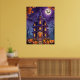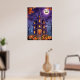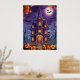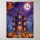 Entrez dans un monde d'enchantement éffrayant avec cette illustration fantaisiste d'une maison hantée. Parfait pour Halloween, cette oeuvre d'art présente une grande maison étroite à l'architecture gothique exagérée, dressée contre un ciel nocturne illuminé par une pleine lune. Les chauves-souris clignotent, tandis que les arbres nus et les lanternes jack-o’s ajoutent à l'atmosphère étrange. Les feuilles d'automne tombées complètent cette scène captivante, en faisant un complément idéal à votre décor d'Halloween.