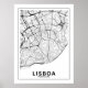 Poster Mapa da Cidade de Lisboa em Portugal, estilo clássico a preto e branco, com linhas das ruas e estradas. Design elegante sem moldura, perfeito para decorar qualquer espaço.
