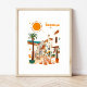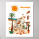 Cette affiche de Marbella en Espagne est une belle pièce d'art. Elle présente une belle vieille ville méditerranéenne avec des maisons blanches, une rue pavée, un palmier et un grand soleil. C'est une carte de vœux parfaite pour les résidents de Marbella, les visiteurs, les touristes ou les fans.