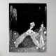 De "Fairy Tales of Charles Perrault", cette merveilleuse illustration décorative en noir et blanc de Harry Clarke (17 mars 1889 - 6 janvier 1931) fait un grand cadeau. Clarke, artiste irlandais en vitraux et illustrateur de livres, est né à Dublin et a été une figure de proue du Irish Arts and Crafts Movement. Henry Patrick (Harry) Clarke est né le 17 mars 1889, fils cadet et troisième enfant de Joshua Clarke et Brigid Clarke (née MacGonigal). Joshua Clarke, décorateur de l'église, déménage à Dublin depuis Leeds en 1877 et lance une entreprise de décoration, Joshua Clarke & Sons, qui incorpore ensuite une division vitraux. Grâce à son travail avec son père, Clarke a été exposé à de nombreuses écoles d'art mais l'Art Nouveau en particulier. Clarke a étudié à l'école modèle de Marlborough Street, à Dublin et au Belvedere College, qu'il a quitté en 1905. Il a été dévasté par la mort de sa mère en 1903, alors qu'il n'avait que 14 ans. Clarke a ensuite fait son apprentissage dans le studio de son père et a suivi des cours du soir au Metropolitan College of Art and Design. Sa consécration de St Mel, évêque de Longford, de St Patrick, a remporté la médaille d'or pour le travail du vitrail au Concours national du Conseil de l'éducation de 1910. À l'école d'art de Dublin, Clarke a rencontré Margaret Crilley, une autre artiste et enseignante. Ils se sont mariés le 31 octobre 1914 et ont déménagé dans un appartement au 33, rue North Frederick. Ils avaient trois enfants, Michael, David et Ann. Illustration de livre Clarke déménage à Londres pour chercher du travail comme illustrateur de livre. Ramassé par l'éditeur londonien Harrap, il a commencé avec deux commandes qui n'ont jamais été achevées : The Rime of the Ancient Mariner de Samuel Taylor Coleridge (dont une grande partie de son travail a été détruite pendant la Rising de Pâques de 1916) et une édition illustrée de The Rape of the Lock d'Alexander Pope. Les difficultés avec ces projets ont fait Fairy Tales de Hans Christian Andersen son premier travail imprimé, en 1916. Il comprenait 16 plaques de couleur et plus de 24 illustrations de demi-teintes. Il a été suivi d'illustrations pour une édition de Tales of Mystery and Imagination d'Edgar Allan Poe : la première version de ce titre était limitée aux illustrations de demi-ton, tandis qu'une seconde avec huit plaques de couleur et plus de 24 images de demi-ton a été publiée en 1923. Cette édition de 1923 a fait sa réputation d'illustrateur de livres, à l'âge d'or de l'illustration de livre-cadeau dans le premier quart du XXe siècle. Le travail de Clarke peut être comparé à celui d'Aubrey Beardsley, Kay Nielsen et Edmund Dulac. Il a été suivi des éditions de The Years at the Spring, avec 12 plaques de couleur et plus de 14 images monotones; (Lettice D'O. Walters, éd., 1920), Charles Perrault's Fairy Tales of Perrault et Goethe's Faust, avec huit plaques de couleur et plus de 70 images en demi-teinte et en duotone (New York : Hartsdale House, 1925). Le dernier de ces oeuvres est son oeuvre la plus célèbre, préfigurant l'imagerie dérangeante de la psychédélique des années 1960. Deux de ses titres les plus recherchés sont des livrets promotionnels pour Jameson Irish Whiskey : A History of a Great House (1924, et les réimpressions subséquentes) et Elixir of Life (1925), qui a été écrit par Geofrey Warren. Son dernier ouvrage, Selected Poems of Algernon Charles Swinburne, a été publié en 1928. Clarke a également continué à travailler dans le vitrail, produisant plus de 130 fenêtres, lui et son frère Walter ayant repris le studio de son père après sa mort en 1921. Son verre se distingue par la finesse de son dessin et son utilisation de couleurs riches, et par une intégration innovante de la fenêtre qui fait partie du design général, inspirée à l'origine par une visite précoce pour voir le vitrail de la Cathédrale de Chartres. Il aimait particulièrement le blues profond. L'utilisation de lignes lourdes par Clarke dans ses illustrations de livres en noir et blanc fait écho à ses techniques de verre. Les vitraux de Clarke comprennent de nombreuses fenêtres religieuses, mais aussi des vitraux séculaires. Parmi les points forts du premier, on trouve les fenêtres du Honan Chapelin University College Cork ; du second, une fenêtre illustrant The Eve of St. Agnes de John Keats (maintenant dans la Hugh Lane Municipal Gallery à Dublin) et la fenêtre de Genève (maintenant dans le Wolfsonian Museum, Miami, Floride, États-Unis). Peut-être ses oeuvres les plus vues étaient les fenêtres qu'il a faites pour le Bewley's Café sur Grafton Street à Dublin.