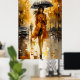 'Walking the Autumn Rain : A Woman's Meditation', une pièce évocatrice qui capture la marche solitaire d'une femme lors d'un jour d'automne pluvieux. Immergé dans un mélange d'atmosphère mélancolique et contemplative, cet ouvrage incarne le charme introspectif de l'automne. Ses riches teintes d'orange et de bronze reflètent les feuilles changeants, peignant une image vivante d'une scène urbaine imprégnée de la transformation cyclique de la nature. La figure solitaire, cachée sous son parapluie, devient un symbole de résilience au milieu des saisons changeantes. Cette oeuvre, réalisée dans le style "forestpunk", mêle habilement la complexité de la vie urbaine à la beauté simpliste du monde naturel.