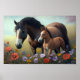Affiche Mare et poulain dans un champ de fleurs