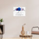 Élégant affiche de bienvenue de mariage sur le thème floral bleu royal violet lilas lavande avec un élégant bouquet de fleurs de rose de couleur bleu poussiéreux, marine, violet, bourgeon de fleurs de lilas et feuilles d'eucalyptus vert sauge. N'hésitez pas à me contacter pour toute aide de personnalisation ou si vous avez besoin d'un autre produit avec ce design.