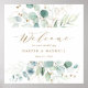Ce signe de bienvenue mariage présente des parties scintillant d'aquarelle peintes eucalyptus, vert botanique et or feuilles avec script or.