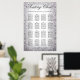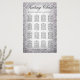 Carte personnalisée des sièges de mariage avec un look parties scintillant argent. Aménagement élégant et charmant pour les tables et les groupes.