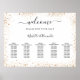 Un élégant arrière - plan blanc décoré avec de la poussière de parties scintillant en faux or. Personnalisez et ajoutez vos noms et noms d'invités. Modèles pour 9 tables. Retour : aucune conception