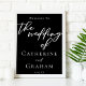 Simplement chic et stylé, notre collection de mariage d'hiver minimaliste présente une élégante typographie cursive pour votre événement moderne. Accueillez vos invités avec un affiche de mariage en soirée audacieuse avec un script blanc simple sur fond noir.