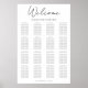 Poster moderne mariage avec un design minimaliste simple en noir et blanc classique. L'en-tête dit, "Bienvenue" dans une élégante typographie de script. Le modèle peut être formaté par table ou par ordre alphabétique.