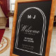 Elégante affiche d'accueil en noir et blanc, simple et minimaliste mariage double arc. Idéal pour les mariages élégants en noir et blanc. La double arche représente deux personnes devenant un dans leur vie ensemble. Ce design est conçu comme un modèle pour votre personnalisation en ligne facile.