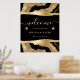 Elégant brillant noir feuille et or parties scintillant liquide agate design avec diamants