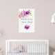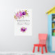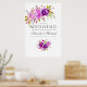 Poster d'accueil mariage roses d'aquarelle et fleurs de pivoine avec violet aux tons violets, rose vif et vert sauge.
