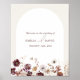 Accueil mariage avec design bordeaux fleur sauvage au fond de l'arc.