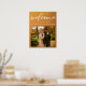 Cette affiche rustique de mariage doré présente une élégante typographie blanche et votre photo de fiançailles d'automne surmontée d'un dégradé de tons de terre sobre. Les teintes simples orange pâle et marron suivent les tendances d'automne actuelles pour un mariage bohème cet automne. Complétez le look avec votre script minimaliste sur le fond de couleur.