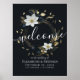 Poster d'Affiche de bienvenue de mariage moderne Vintage élégant Modèle - Elegant Black White et Gold Floral Wreath. Ces Designs Peuvent Être Personnalisés Pour Votre Occasion Spéciale Et Seraient Parfaits Pour Votre Mariage, Fête des mariées, Partie D'Engagement, Fête D'Anniversaire Et Beaucoup D'Autres Occasions Spéciales.