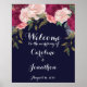 Un beau panneau d'accueil à afficher à votre réception/fête de mariage, etc. Arrière - plan de la marine, les flancs bordeaux/roses rousses créent une impression élégante. Parfait pour les mariages toute l'année. Il vous suffit de modifier le libellé ou les noms pour qu'ils correspondent à vos propres détails. Quelques graphiques utilisés à partir de TwigsAndTwineArt.com.