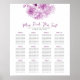 Poster de signalisation mariage de la carte des sièges en aquarelle pourpre fleurie. Jolie aquarelle botanique signature de mariage de printemps personnalisable avec votre propre nom d'invité de réception, le design de la carte de sièges est pour 12 tables. Belle décoration florale idéale pour un mariage à thème mauve ou printanier. © Original peint à la main aquarelle art et design par Sarah Trett pour www.mylittleedenweddings.com