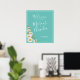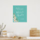 Joli panneau de bienvenue mariage avec aquarelle blanc marguerites coin sur turquoise clair arrière - plan avec blanc personnalisable blocs de texte dans les polices modernes