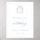 Monographie Dusty Blue Crest, affiche de bienvenue mariage. Crête baroque d'inspiration vintage.