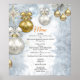 Des décorations d'or et d'argent pétillantes entourées de feuillage festif vert sauge, avec de la neige fraîchement tombée dans un pays merveilleux d'hiver, pour votre jour de mariage sur le thème de Noël.