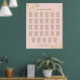Ce magnifique tableau de sièges mariage présente un design simple mais élégant avec du texte en or sur un arrière - plan rose pâle et clair. Il y a des fraises fantaisie or ou floral fantaisie dans les coins et un titre de calligraphie de script "s'il vous plaît trouver votre table." Le tableau a des affectations de table pour 290 invités à 29 tables (10 places par table).