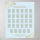 Ce magnifique tableau de sièges mariage présente un design simple mais élégant avec du texte en or sur un arrière - plan bleu clair en poudre. Il y a des fraises fantaisie or ou floral fantaisie dans les coins et un titre de calligraphie de script "s'il vous plaît trouver votre table." Le tableau a des affectations de table pour 290 invités à 29 tables (10 places par table).