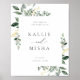 Cadre naturel de verdure botanique, affiche de bienvenue mariage. Verdure aquarelle aux accents de feuillage doré.