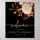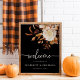 Ce panneau de mariage élégant présente des feuilles de couleur orange brûlé et terracotta peintes à la main à l'aquarelle, des dahlias crème et beige, et de belles roses de couleur rouille sur un fond noir avec du texte crème. Trouvez des articles assortis dans la collection Black Autumn Romance.