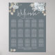 Cette conception comprend un tableau de sièges de bienvenue de mariage floral, une table de signature élégante bleu poussiéreux, des fleurs de rose botanique simples, un bouquet de jardin élégant avec verdure, des feuilles vertes et roses blush, un numéro de table de sièges pour invités, un script de calligraphie stylé tendance, une typographie fantaisiste, un panneau d'affiche de réception de mariage, une décoration de réception de mariage moderne et tendance