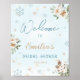 Panneau de bienvenue en bleu et or pour une fête de mariage ou de fiançailles sur le thème de l'hiver fantaisiste ou une autre occasion. Panneaux, jeux, décorations et plus disponibles dans ma boutique.
