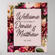 Bienvenue à vos invités dans le style avec cette élégante enseigne mariage fleurie. Conçu avec des fleurs romantiques et des lettres gracieuses, il dit "Bienvenue à notre Mariage" et comporte vos noms personnalisés. Présentez-le à l'entrée de la cérémonie ou à la réception pour une touche personnelle et polie. Parfait pour les thèmes fleuris, jardins ou mariage moderne.