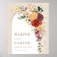 Magnifique panneau de bienvenue inspiré du bohème, orné de diverses fleurs aquarelles mélangées à de la verdure et à de l'herbe de pampa aérienne dans diverses nuances de rouge, rose, jaune et vert. Personnalisez le panneau avec vos propres mots ! Si vous souhaitez modifier le style de police, la couleur ou la disposition du texte, cliquez simplement sur le bouton "Personnaliser davantage".