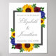 Le design présente d'élégants tournesols, des roses et des fleurs sauvages aux couleurs jaune doré, bordeaux et bleu. Le design comporte également un cadre gris charbon de bois. Vous pouvez changer la couleur arrière - plan en la couleur de votre choix ou la laisser sur le blanc.