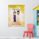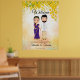 Mariage indien du sud Tamil Telugu signe de bienvenue. Couleurs chaudes avec une jolie illustration de couple indien et des fleurs suspendues jaunes.