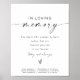 Cette pancarte en souvenir affectueux présente une police manuscrite bohème et une mise en page minimaliste moderne. Cette pancarte commémorative est parfaite pour votre événement minimal élégant. Modifiez facilement *la plupart* du texte et modifiez toutes les couleurs pour répondre aux besoins de votre événement. Associez-la à tout ce qui se trouve dans la collection BLAIR pour une apparence cohérente.