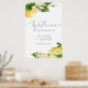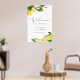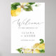 Cette affiche d'accueil mariage moderne de 24x36 pouces est parfaite pour un mariage de printemps ou d'été. Le design méditerranéen rustique présente de beaux citrons aquarellés aux fleurs blanches bohème et d'élégants feuilles verts. Customisez l'affiche avec le nom de la mariée et du marié, et la date du mariage.