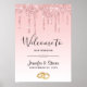 Une affiche simple et moderne "Bienvenue à notre mariage". L'arrière - plan a une image de parties scintillant rose étincelante gouttes au sommet. Le reste de l'arrière - plan est un délicat dégradé de couleur rose pastel. 2 bandes de mariage or sous le texte personnalisé.