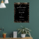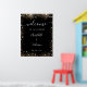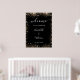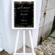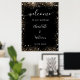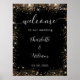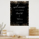 Une affiche de bienvenue pour un mariage. Un élégant arrière - plan noir décoré de parties scintillant en faux or brille. Personnalisez et ajoutez vos noms et la date du mariage. Lettres blanches.