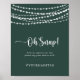 Ce mariage oh snap rustique lampes à cordes vert poster est parfait pour une simple douche mariage ou nuptiale. Le design comprend de belles lampes à cordes peintes à la main dans un arrière - plan vert. Personnalisez le panneau avec votre hashtag mariage.