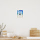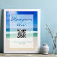 Une belle photo de vagues océaniques décore cette affiche de caisse pour lune de miel de mariage de destination moderne. Jolie écriture cursive bleue sur la photographie tropicale au bord de la mer pour votre panneau de mariage sur la plage.