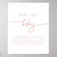 Ce panneau "Ne pas dire" est doté d'une police manuscrite moderne et d'un design minimaliste avec une combinaison de couleur rose et blanc foncé pour fille. Utilisez ces modèles pour modifier tout le libellé, la police, la couleur de police et la couleur de l'arrière - plan pour qu'ils correspondent à votre style d'événement.